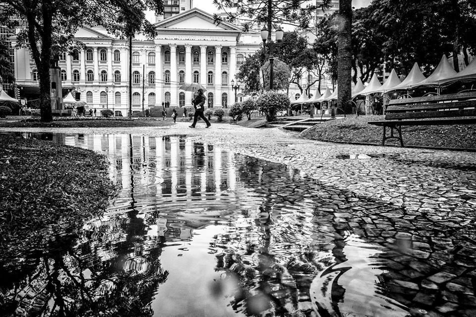 Amaldiçoei por um semestre inteiro essa merda – sic – de situação, e de cidade, até o dia em que voltando pra casa, torcendo para chegar rápido antes da chuva, tomei uma banho de uma tromba d’água lá no comecinho do Passeio Público.