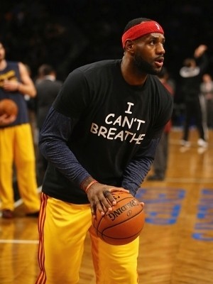 Salta para 2020: LeBron James no Los Angeles Lakers. Não sou conhecedor de Basquete, sei apenas que LeBron jogou a maior parte da sua carreira em Cleveland, mas hoje é atleta do Lakers. O meu ponto é apenas um: publicamente ele se posiciona, não tem medo de perder compradores de tênis. O cara apoiou Hillary Clinton, contra Trump, o que também não é muito, considerando que Bernie Sanders seria muito melhor, evidentemente. Sim, hoje é até mais fácil dar a cara a tapa, e então a gente pode ver uma foto como essa, em referência ao cruel assassinato de George Floyd: