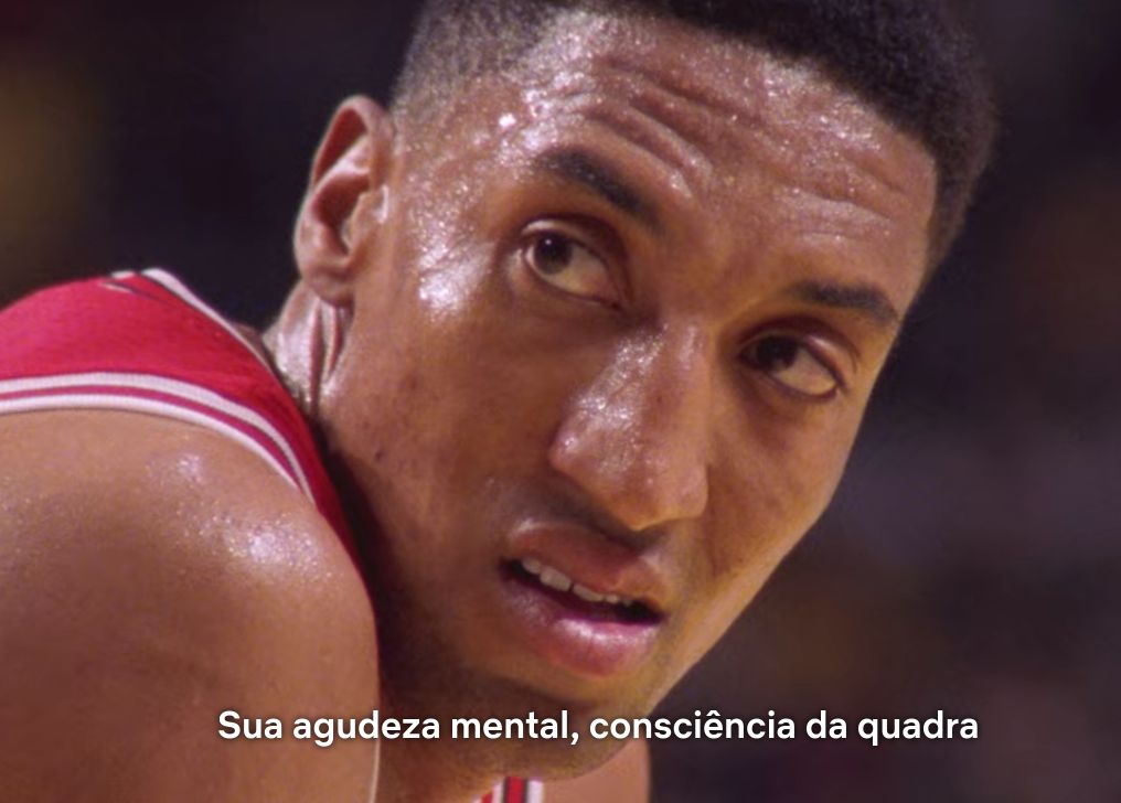Os momentos em que Pippen é descrito na sua personalidade tímida me parecem os mais singelos do filme. E correspondem aos momentos em que o documentário vai ganhando importância; para além da denúncia ao tratamento injusto dedicado ao atleta, nesse ponto o filme transita: de um documentário lambe-bolas de Jordan a obra passa a ser, efetivamente, um estudo de personagem, inclusive com a inserção do também fundamental e interessantíssimo Dennis Rodman.